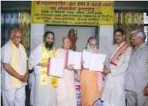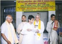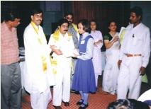 Pandit Mahesh Dutt Sharma (President of All India Brahmin Mahasabha) presenting an award to Bliends Students 21-09-08