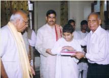 Pandit Shri Ram Kr. Sharma-Distributing prize to a visually handicapped child
