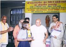 Swami Raghvanand Ji (President - Santan Dharm Pratinidhi Sabha- Delhi) presenting awards to visually handicapped girl child.